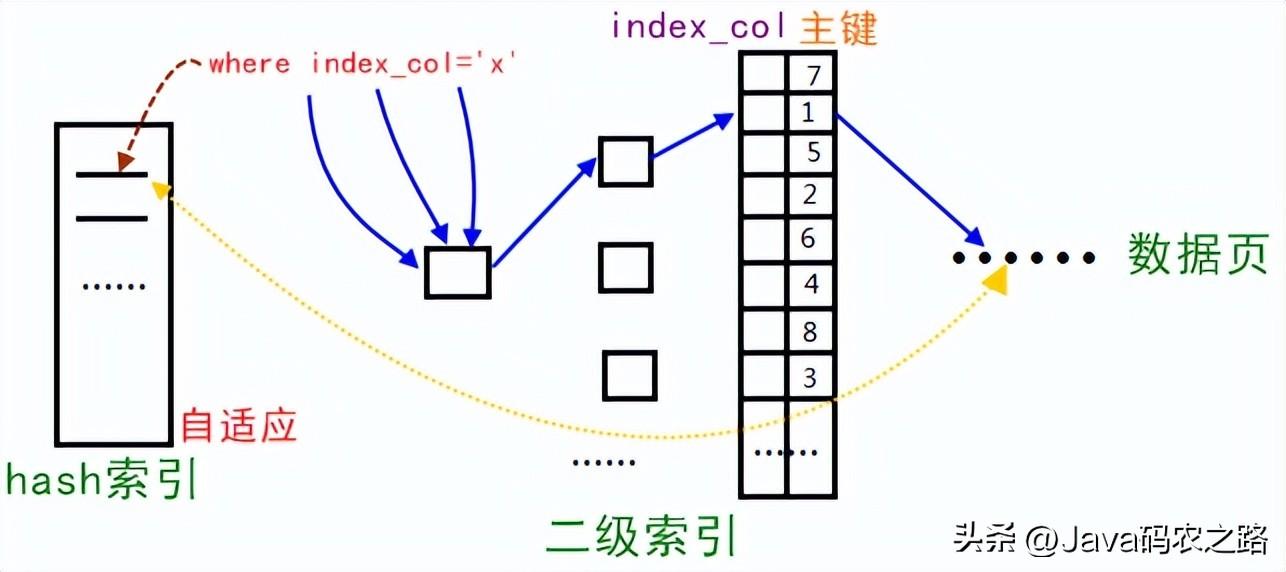 InnoDB用户无法手动创建哈希索引,这一层上说,InnoDB确实不支持哈希索引;InnoDB会自调优(self-tuning),如果判定建立自适应哈希索引(Adaptive Hash Index, AHI),能够提升查询效率,InnoDB自己会建立相关哈希索引,这一层上说,InnoDB又是支持哈希索引的;那什么是自适应哈希索引(Adaptive Hash Index, AHI)呢?