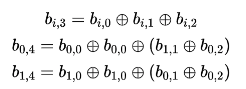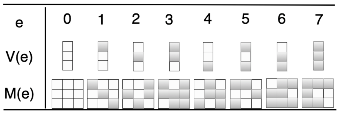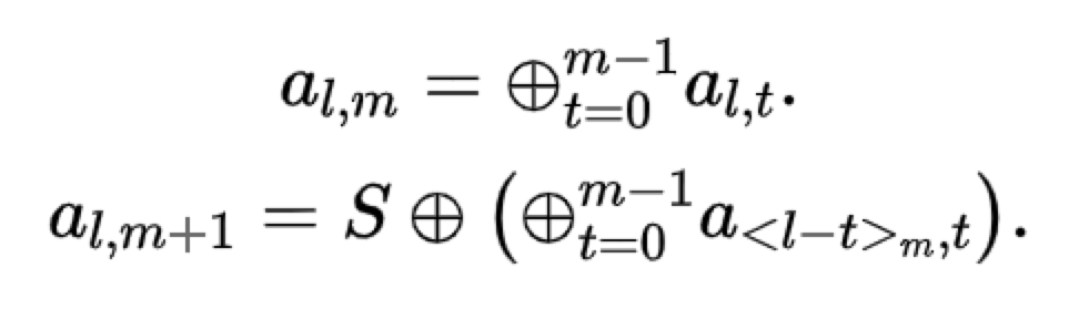 其中,M ( e )的第i 列为V ( e ∗ 2^ (i − 1 )) 其中e ∗ 2^(i-1) 为G F ( 2 ^3 ) )上的乘法。