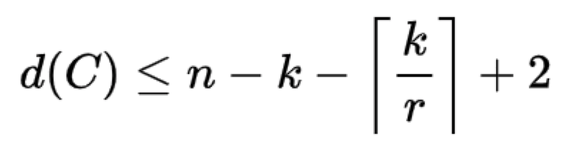 假设C是一个参数为[n,k]的线性码,则C的极小距离d≤n-k+1。以上表明一个线性码的极小距离不会“太大”,无论怎样努力,都不能够构造出一个参数为[n,k]的线性码,使得它的极小距离大于n-k+1,这个n-k+1就称为Singleton界。