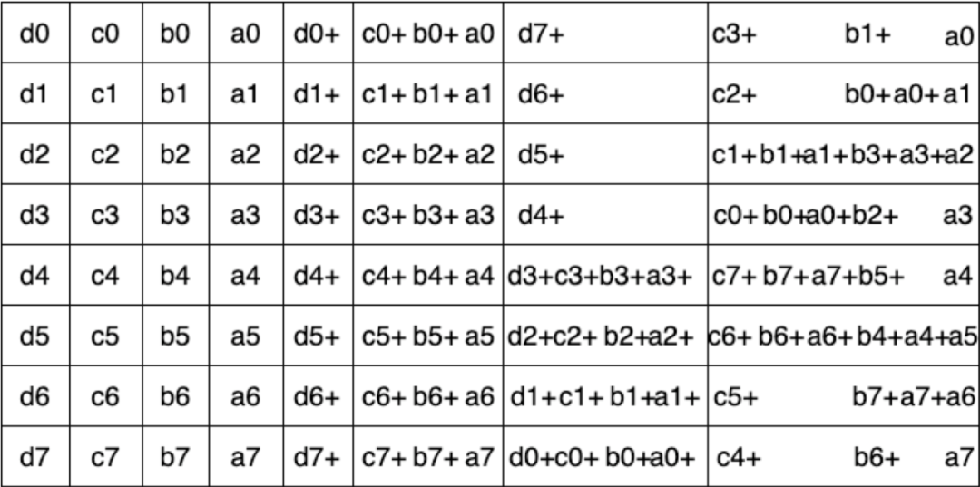 首先数据符号需要转换成一个bit矩阵2^(k-1) * k记为Dk,用矩阵表示如下: