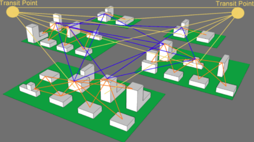 以下为业界某司的IDC之间的网络拓扑架构如下:【引用自公有云多region多AZ机构】