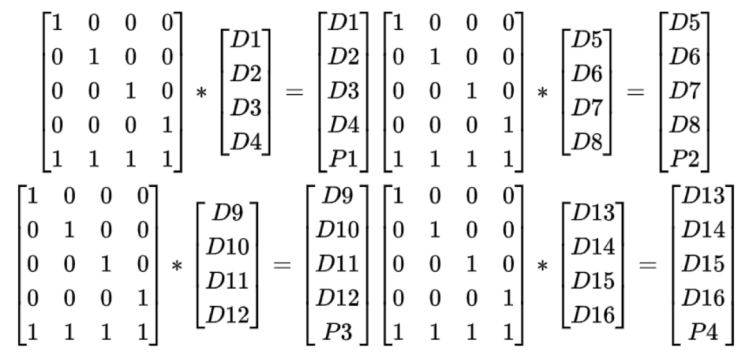 我们假设局部校验块P1、P2、P3、P4的构造按如下所示:
