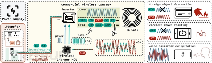 这为 VoltSchemer 攻击开辟了至少三种潜在攻击途径,包括过热/过度充电、绕过 Qi 安全标准以及在充电智能手机上注入语音命令。